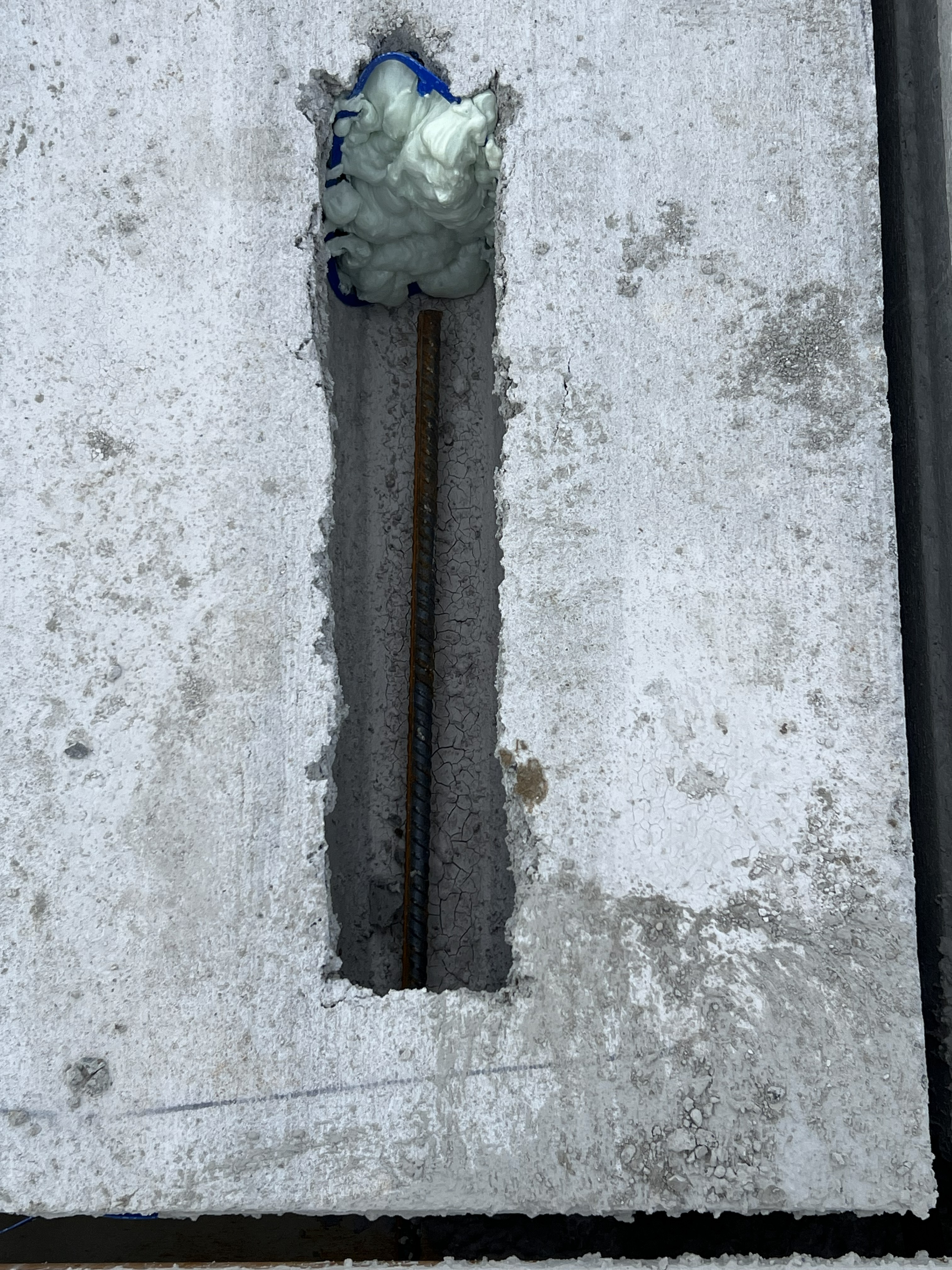 Fig. 10.33 Detail of milled cut-out slot in hollow core slab to allow connection of steel delta-beam via reinforcement bar welded to beam#