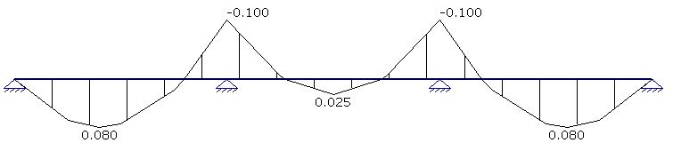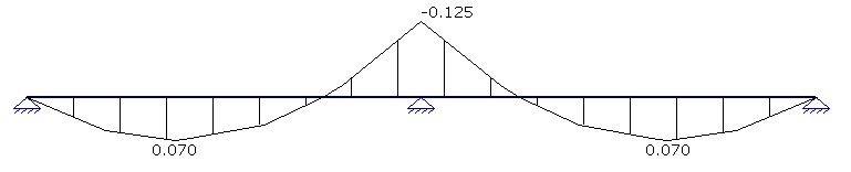 Fig. 3.15 Moment diagram beam on 3 support points under equally distributed load.#