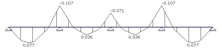 Fig. 3.17 Moment diagram beam on 5 support points under equally distributed load.#