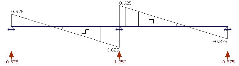 Fig. 3.18 Shear force diagram beam on 3 support points under equally distributed load.#