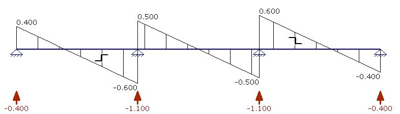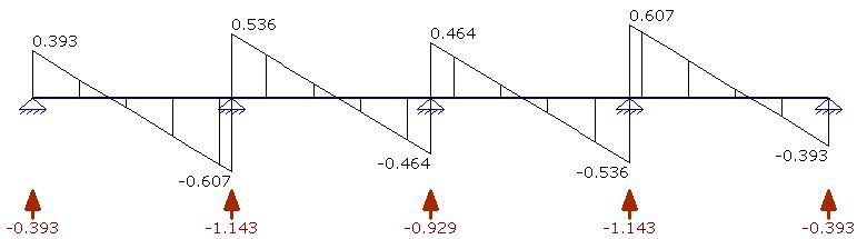 Fig. 3.20 Shear force diagram on 5 support points under equally distributed load.#