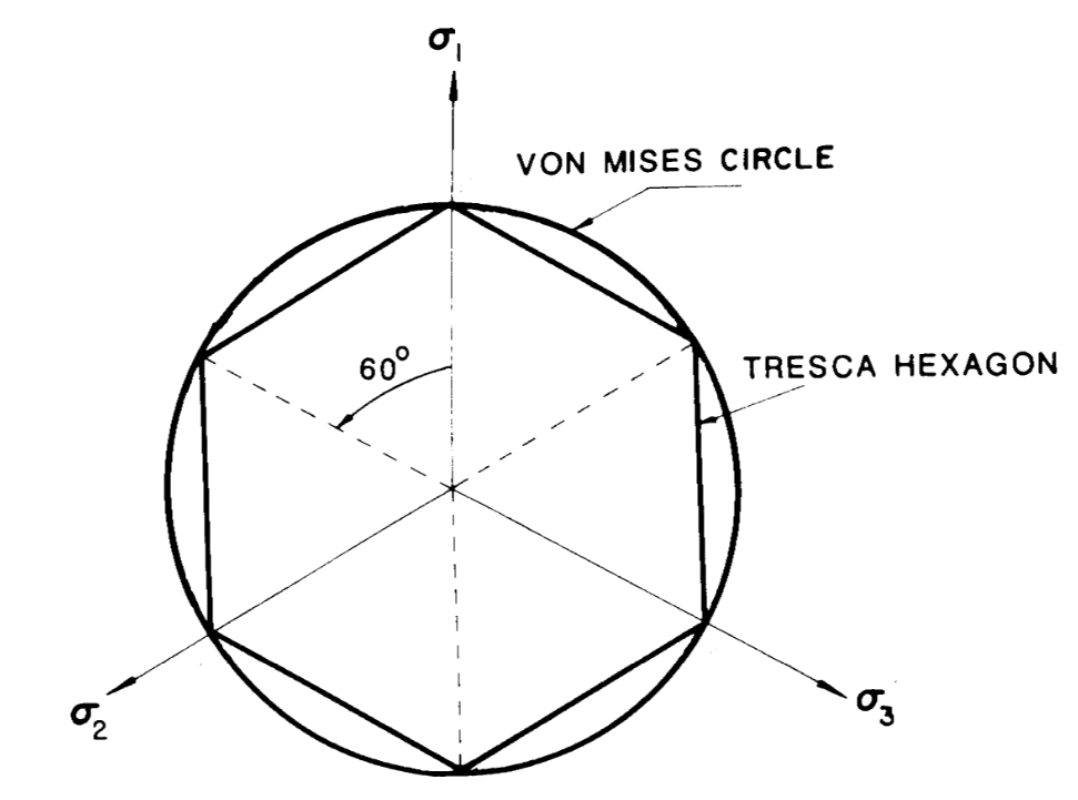 Tresca assumed failure if the shear stress exceeds a certain limit value \(c\):