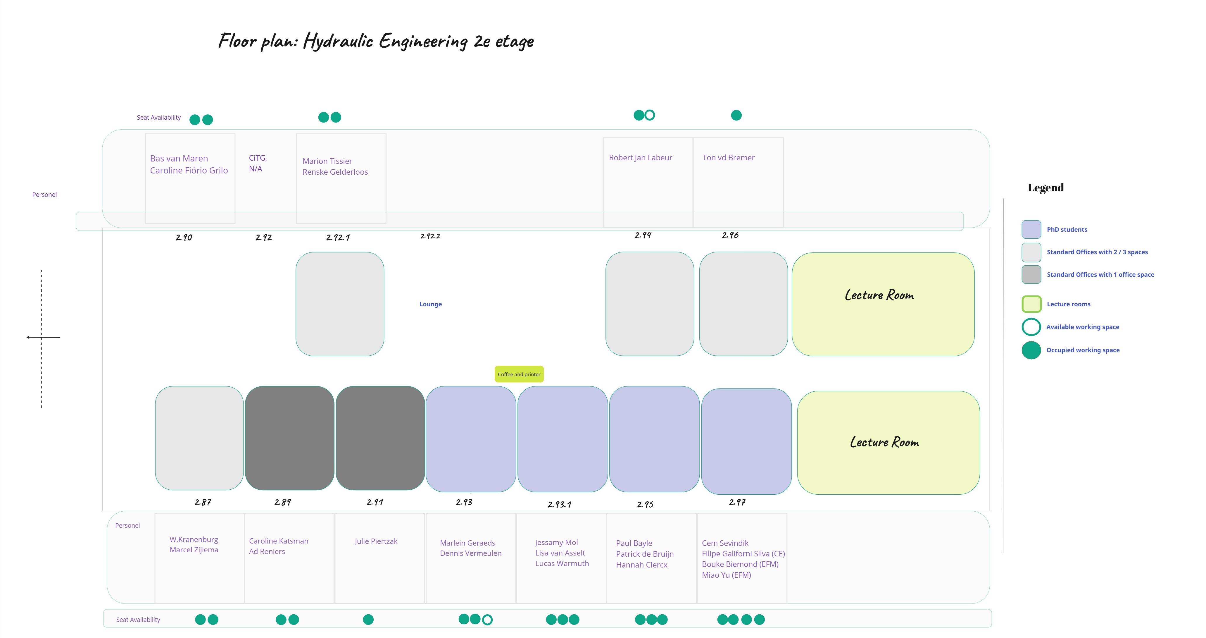 In this page you can find the floor plans of the HE Department with the relevant offices in the 2nd and 3rd Floor of the Civil Engineering and Geosciences Building and the Hydraulic Engineering Laboratory.