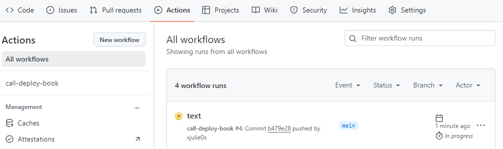 Now let’s see the result. Go back to your GitHub repo. In the top bar, go to actions.