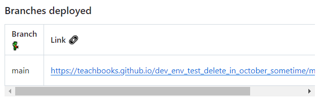 You will see the latest commit you just did (in this case text). After the pipeline has run, the yellow icon will turn green. Click on the commit and scroll until you see the title Deployed Branches.