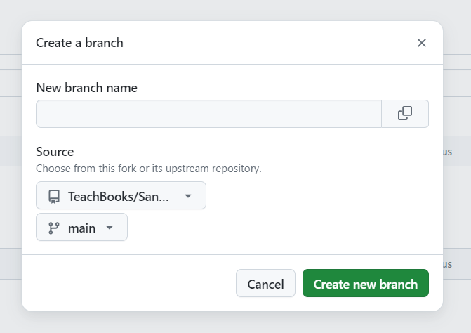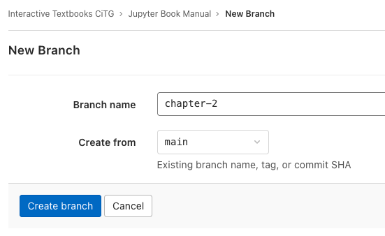 chapter-2is a suitable name if we’re going to be working on Chapter 2 of our book. After you’ve made sure that the selected source branch is correct, click “Create branch”.